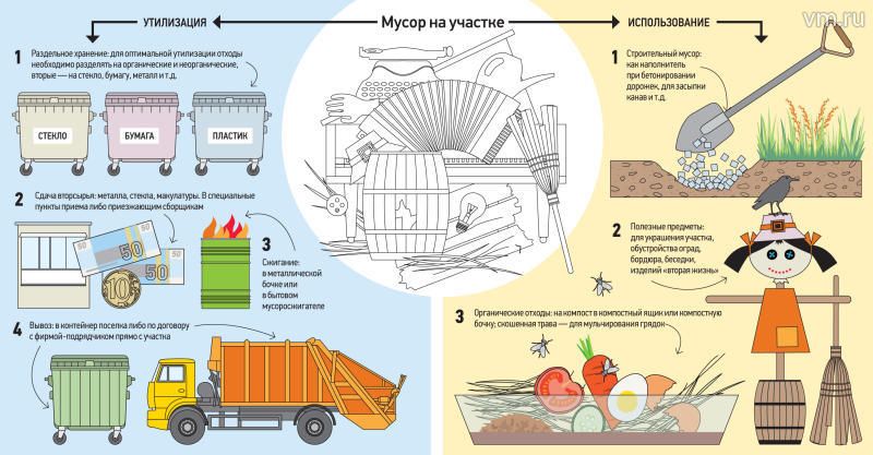 — Гор мусора, как бывало раньше, нигде нет, — говорит глава Марушкинского Андрей Стиславский. — Если нерадивые дачники и оставят пакет с отходами на дороге, его тут же уберут и вывезут. Борьба ведется в режиме онлайн! Ну а мы предлагаем читателям посмотреть на инфографике, как можно оптимизировать оборот мусора на своем участке.