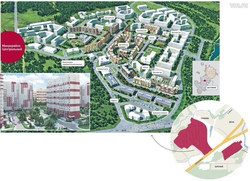 Комплексный проект «Новые Ватутинки» коренным образом отличается от проектов, реализуемых в «старой» Москве. Кроме многоэтажных домов, здесь строятся малоэтажные многоквартирные комфортабельные здания. Между собой жилые кварталы будут соединены переходом через Калужское шоссе. По словам заместителя главы администрации поселения Десеновское Валентины Курбатовой, первоначальный проект был утвержден еще в 2011 году, а позже доработан с учетом размещения всех необходимых объектов.