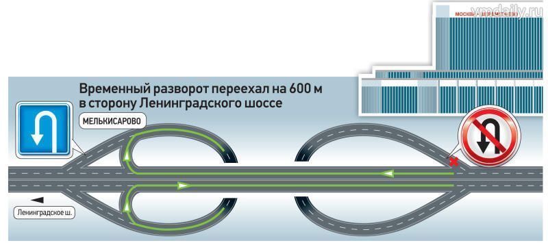 — Альтернативный разворот располагается у деревни Мелькисарово, недалеко от старой разворотной зоны, — рассказал директор компании по связям с общественностью и маркетингу Сергей Ильинский. — Водителям нужно лишь проехать чуть дальше в сторону Ленинградского шоссе и, руководствуясь информацией дорожных знаков и указателей, совершить разворот.