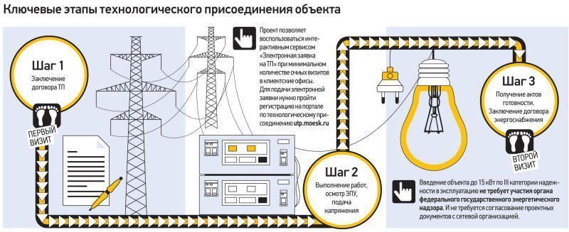 Позаботились сотрудники МОЭСК и о том, чтобы сократить время от подачи заявки до технологического подключения объекта. С этой целью был разработан проект «3 шага 2 визита», благодаря которому присоединиться к электросетевой инфраструктуре можно за 30–90 дней, совершив всего два визита в клиентский офис.