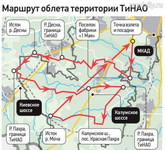 Оперативная группа, в которую вошли начальник Управления по ТиНАО ГУ МЧС России по Москве полковник Чернега И. Б., заместитель префекта ТиНАО Концевая Л. В., заместитель начальника Управления по ТиНАО ГУ МЧС по Москве полковник внутренней службы Матвеев Н. Г, представитель ОАО «Мосводоканал» Наврузов Е. Д., проделала большую работу. Маршрут специалистов, вылетевших с вертолетной площадки, расположенной на 35-м километре внутренней стороны МКАД, лежал через Десну, Пахру и Мочу. В ходе обследования территории с воздуха комиссия пришла к выводу: разливов рек и скопления на них льда не наблюдается.