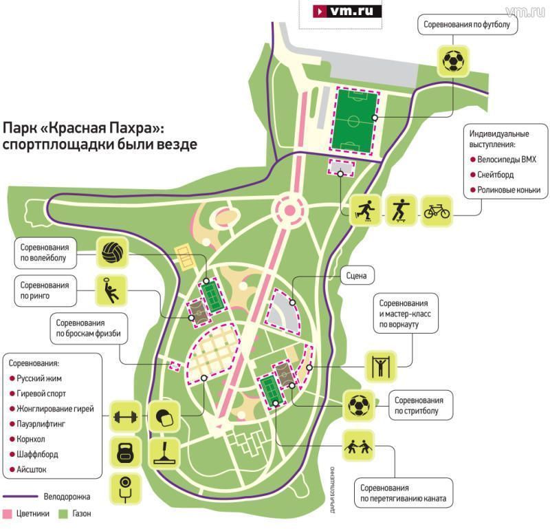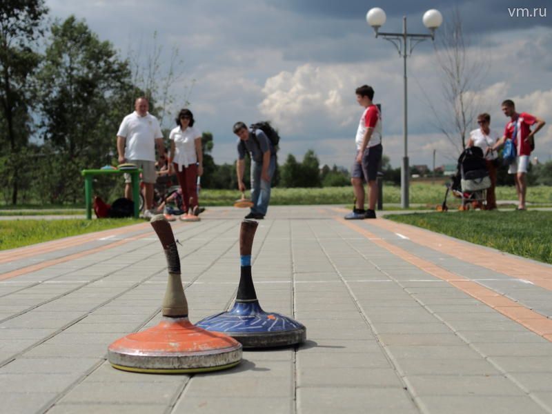 В парке в этот день работала площадка для экзотических игр, которые еще набирают популярность среди новых москвичей. На одной из площадок гостям молодежного праздника предлагали сыграть в корнхол — игру древних американцев. Ее суть в том, чтобы забросить в круглое отверстие в доске квадратные мешочки, наполненные бобами. Была площадка и для игры в шаффлборд (смесь керлинга и классиков).
