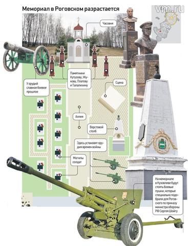 Администрация Роговского поселения совместно с меценатами обратилась в Минобороны России с просьбой выделить для мемориала артиллерийские орудия, участвовавшие в боях. Ответ не заставил себя ждать: по приказу главы ведомства Сергея Шойгу артиллерийские орудия времен Великой Отечественной были переданы в собственность поселения Роговское.