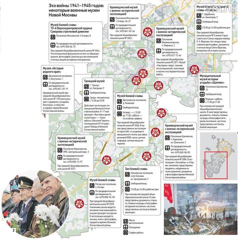 Военные экспонаты в большинстве своем «живут» в школьных экспозициях. По словам методиста по музейной педагогике окружного Управления образования Натальи Васюковой, всего в ТиНАО 21 школьный музей (а школ — 30). В марте началась их сертификация в соответствии с московскими стандартами. Пока сертификаты получили 9 школьных музеев.