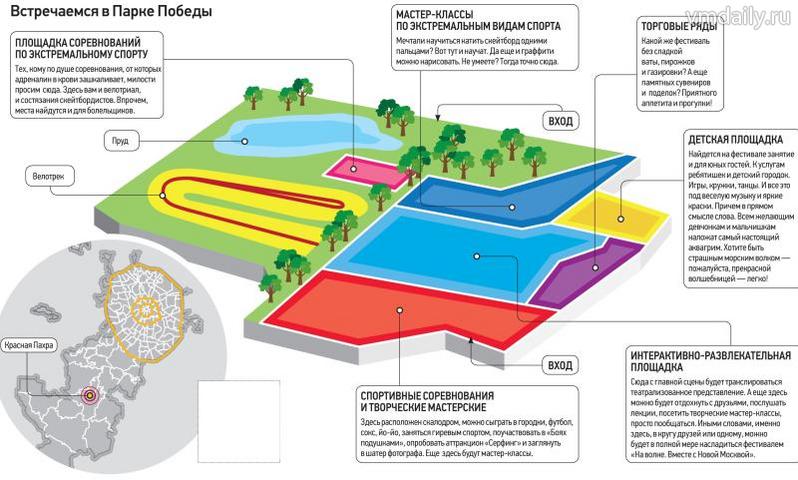 Сюда с главной сцены будет транслироваться театрализованное представление. А еще здесь можно будет отдохнуть с друзьями, послушать лекции, посетить творческие мастер-классы, просто пообщаться. Иными словами, именно здесь, в кругу друзей или одному, можно будет в полной мере насладиться фестивалем «На волне. Вместе с Новой Москвой».
