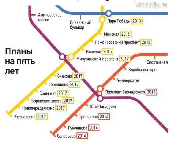 Ввод в эксплуатацию участка продления Сокольнической линии метрополитена с тремя новыми станциями запланирован на 2014 год.