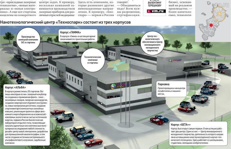 Нанотехнологический центр «Техноспарк» состоит из трех корпусов