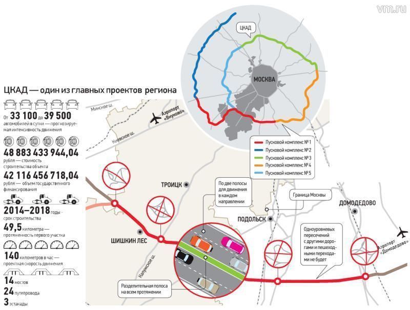 — Главная цель, ради которой реализуется проект -разгрузка выездов из Москвы и МКАД, увеличение пропускной способности дорог. Кроме того ЦКАД важен и экономически: машины с товаром будут быстрее добираться до потребителя, в результате сократятся транспортные расходы, которые закладываются в стоимость товаров.