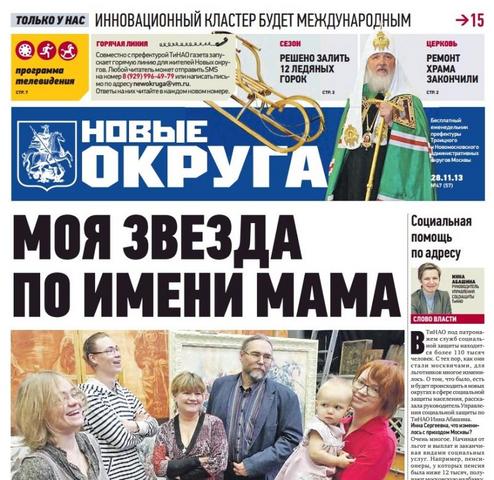 Издание, рассказывающее о новостях присоединенных территорий, стало финалистом ежегодного городского смотра, проводимого столичным Департаментом СМИ и рекламы, «Информируем из первых рук». «Дочке» «ВМ» досталась первая премия в номинации «Лучшая окружная газета». Поздравления от властей редактор «Новых округов» Оксана Крученко, зам. главного редактора «ВМ» Гаяз Алимов и гендиректор «Вечерки» Александр Чекшин принимали вчера, 2 декабря, в здании мэрии. Торжественная часть с вручением дипломов предварила XIII Московский городской отраслевой форум печати, на который съехались представители СМИ и префектур города.