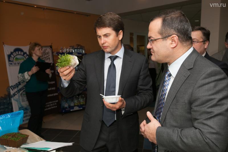 Перед встречей была организована выставка сельхозпродукции, которую производят в Новой Москве. В выставке приняли участие порядка 30 предприятий. Немерюк пообщался с каждым из производителей.