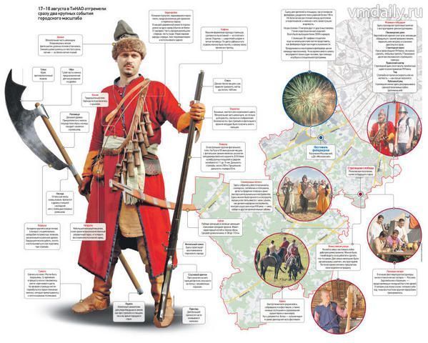 Между тем действие фестиваля разворачивалось полным ходом. Вооруженные по уставу, в одежде, сшитой по образу и подобию той, что носили в XVII веке, стройными рядами маршировали войска, то сходясь на поле брани с противником, то устраивая тренировочные бои.