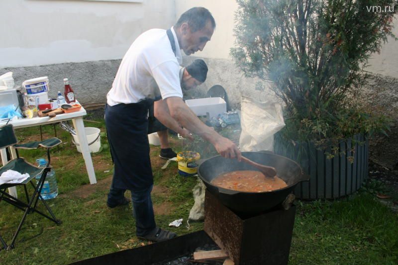 — Самый вкусный в Москве морковный пирог! — без ложной скромности рекламировали себя ребята. — Это специально для детей, которые не любят овощи! Рецепты собственные, производство — свое, домашнее. Придумали и сделали! Более серьезно подкрепиться можно было куриными котлетами, пирожками, шашлыком, пловом.