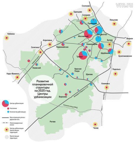 — Важно, чтобы присоединенные территории не превратились в огромный спальный район, — пояснил эксперт. — Поэтому организация здесь сотен тысяч рабочих мест — необходимость. Москва должна стать полицентричной. Нынешняя радиально-кольцевая структура — это тупик в городском развитии.