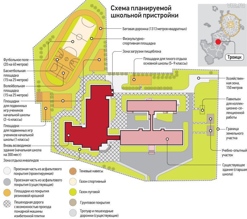 Пользоваться спортивным инвентарем новой школы смогут и учащиеся старших классов. Перейти из одного помещения в другое можно будет по коридору. Школьный стадион, на территории которого сейчас ведутся строительные работы, стал излюбленным местом не только учеников, но и местных жителей. После возведения пристройки размеры стадиона сократятся в разы, однако, как уверяет начальник отдела физкультуры и спорта города Троицка Сергей Мискун, хуже стадион от этого не станет.