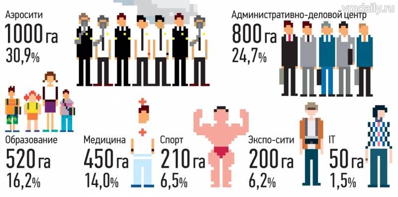 Необходимо создание на новых территориях полицентричной и полифункциональной структуры центров и кластеров: административно-делового;