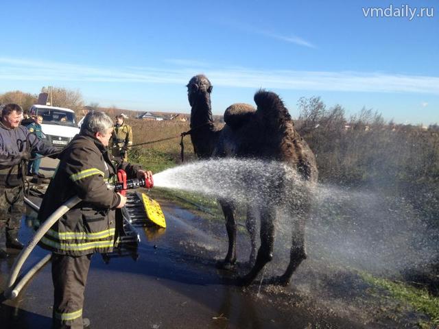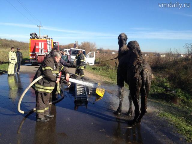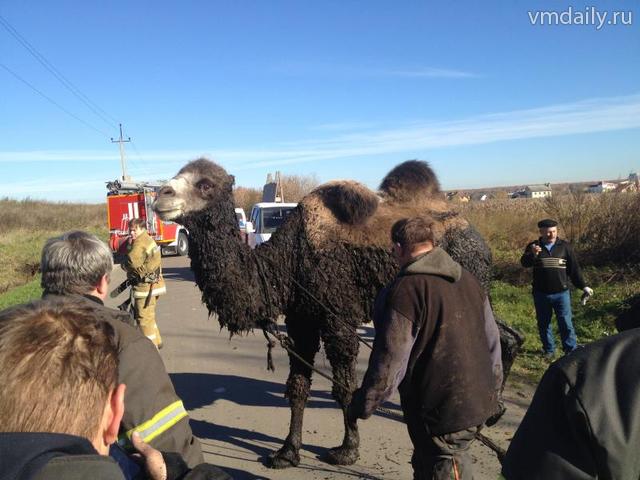 Алмаз, так зовут пострадавшего, угодил в болотистую канаву и самостоятельно не мог выбраться. Проезжавший мимо водитель «КамАЗа» заметил торчащую голову верблюда и сообщил в «01».