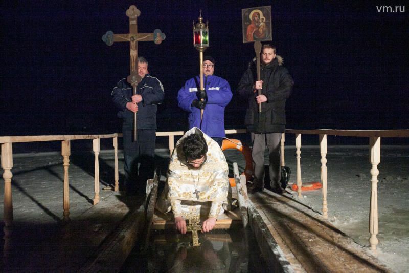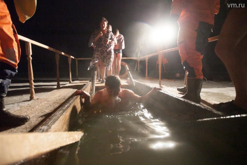С шатрами, где можно было попить горячего чая, раздевалками, освещением и специальными лестницами для захода в воду с берега. Во избежание несчастных случаев у купелей дежурили спасатели, бригады скорой помощи.