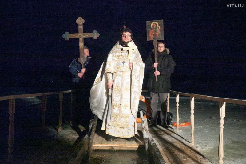 Началось все по графику, в 21.30 батюшка приступил к обряду освящения воды в купели. В Кувейкино окунуться приехали не только жители Новой Москвы, но и прихожане храма Дмитрия Донского из Северного Бутова.