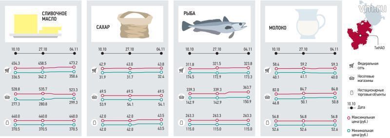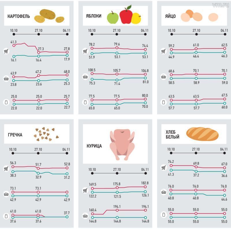 Ну а мы предлагаем посмотреть на динамику цен в магазинах Новой Москвы за две последние недели октября и начало ноября. Данные свидетельствуют: цены на основные продукты в магазинах Новой Москвы находятся в рамках рыночных колебаний.