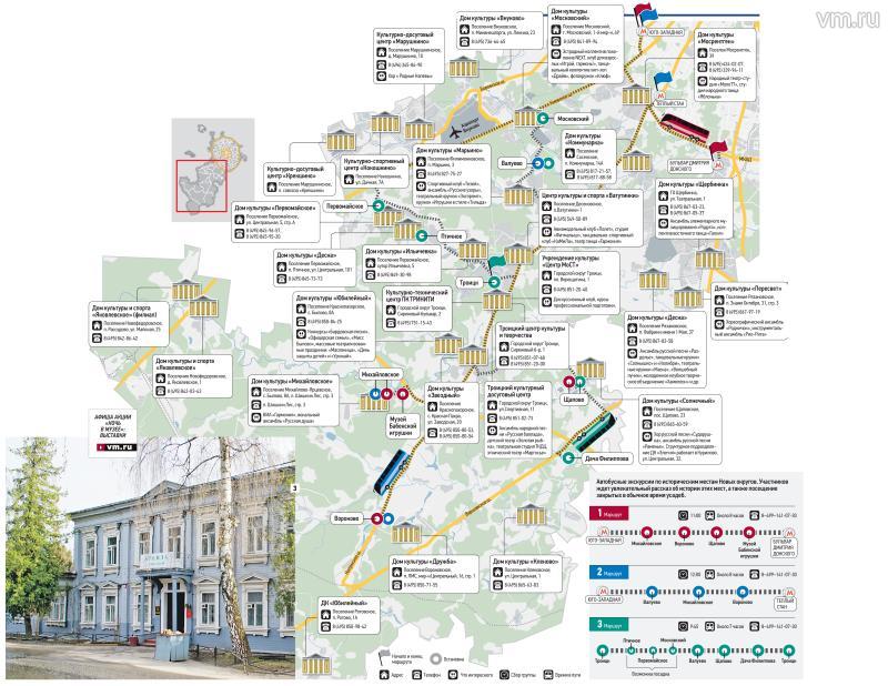 Включились в «музейную ночь» и дома культуры новых территорий. Культурные программы, связанные с историей родного края, кинофильмы и выставки прой- дут в клубах многих поселений. Так, в ДК «Звездный» запланирована выставка исторических костюмов, а в кинозале в 19 часов будет показан документальный фильм «Новая Москва: от Ватуты до Аэрограда».