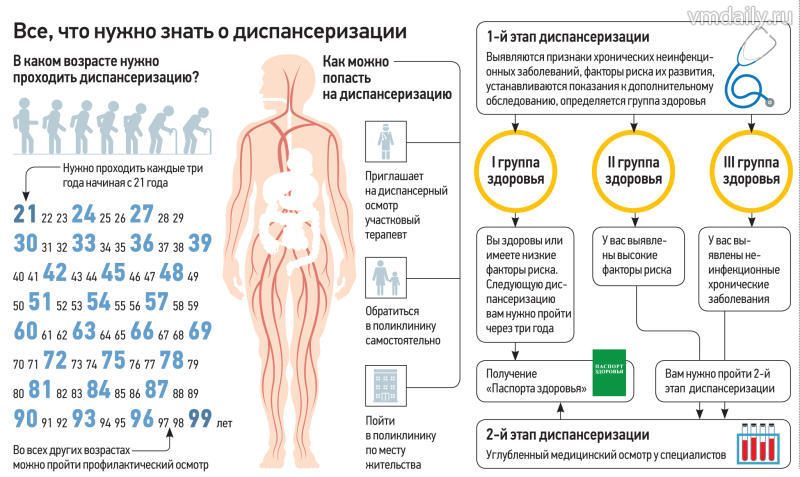 — Диспансеризация проводится раз в три года и включает в себя, помимо универсального для всех возрастных групп набора методов, методы углубленного обследования, предназначенные для раннего выявления наиболее вероятных неинфекционных заболеваний.