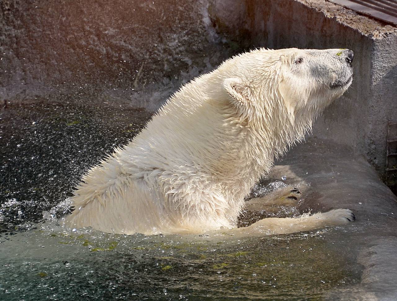 Зимний сезон является идеальным временем, чтобы понаблюдать за крупнейшим наземным хищником планеты — белым медведем. Жительница Московского зоопарка Айка часто плавает в воде и изучает вольер.